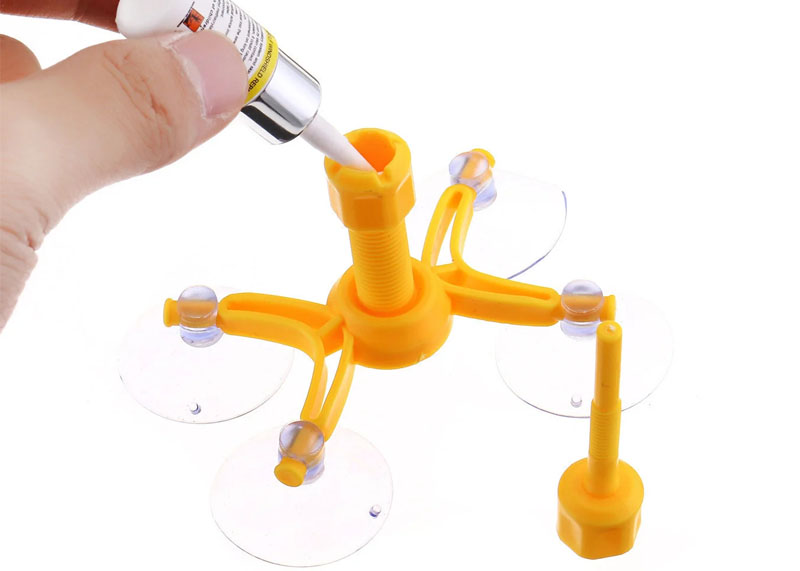 - Postavite „nogice“ koje ne dnu imaju vakum pomoću kog se drže za staklo i to tako da pukotina bude na sredini.