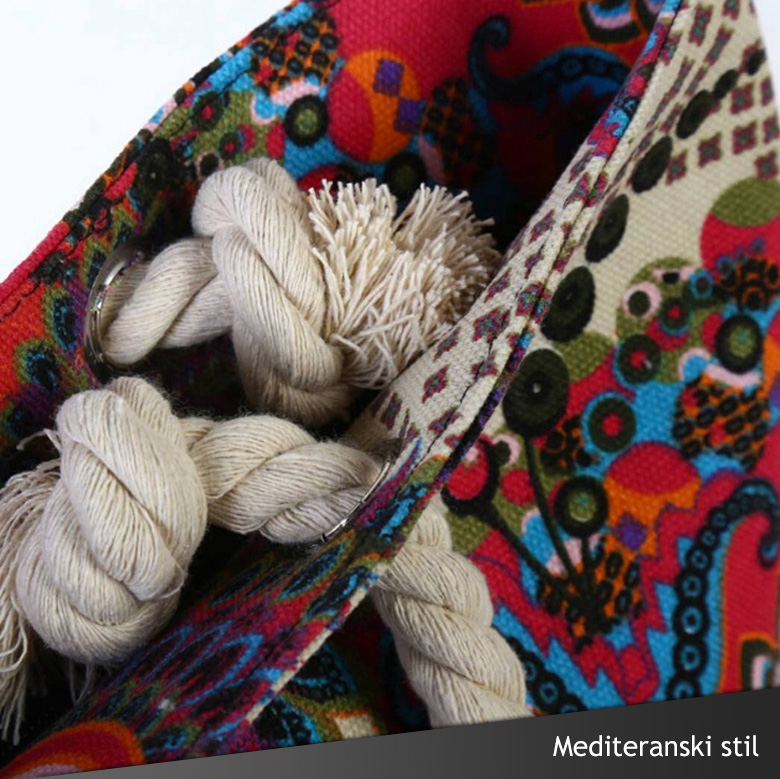 Išarana je veselim kaledioskopskim krugovima različitih veličina i boja, a na vrhu se nalaze jake deblje ručke poput konopca, što je izuzetno moderno ovog leta, naročito ako odlučite da je nosite na plažu i da imate neki „mornarski“ detalj. No, osim za plažu, sjajan je izbor i za opuštene dnevne/večernje šetnje po gradu, bezobzira na to koja boja dominira na vašoj odeći. Jer ovog leta su dozvoljene šarene vesele kombinacije!