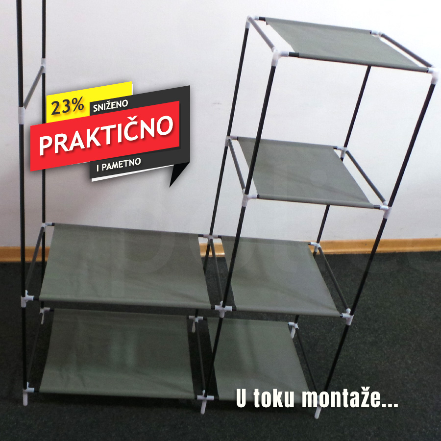 Glavni aduti ovog komada nameštaja su prenosivost i rasklopivost. Ovaj garderober je izuzetno lagan – teži manje od 2kg! Po potrebi, lako možete da ga premestite u drugu prostoriju. Iako ne zauzima mnogo prostora, ipak je dovoljno velik da u njega može da stane prilično velika količina odeće, a ispod njega može da se poređa cca 5 pari cipela s obzirom da je donji deo odvojen od poda.